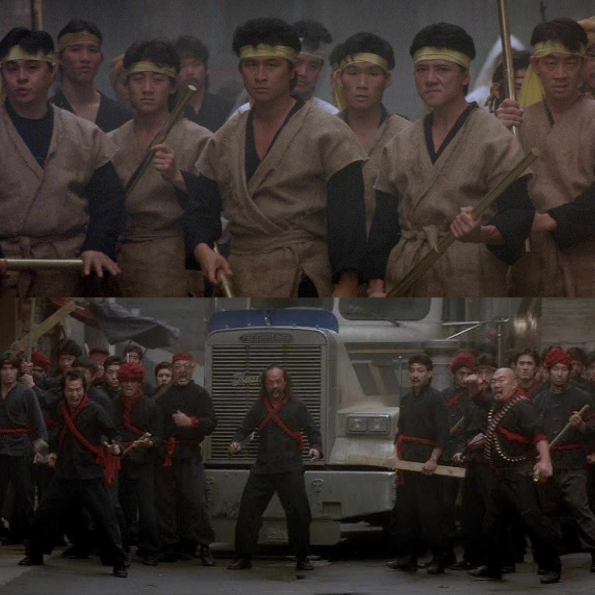 On one side stands the Chang Sings, a noble fighting tong long dedicated to the protection of Chinatown. They are dressed in white tunics and yellow turbins or headbands, and have a super cool way of acknowledging each other. On the other side stand the Wing Kong, an evil fighting tong who are recognized by their black outfits and red turbins and sashes (please note that famous 80s action movie henchmen Al Leong, who had the best wedding annoucement ever, is part of the Wing Kong).
