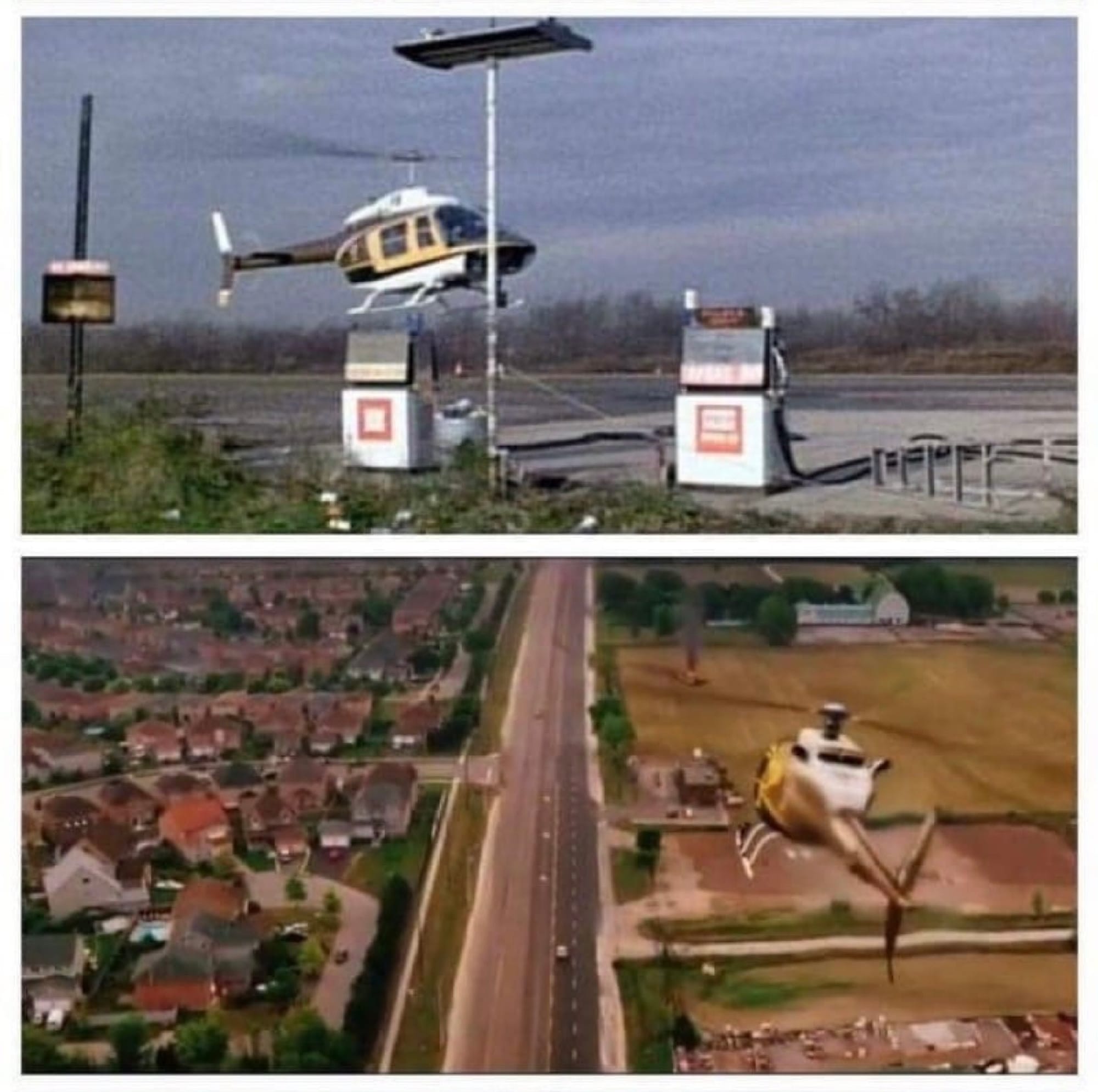 One of my favorite things with this films is how it will forever show it’s age, like how the zombies are all painted in a shockingly fake blue-gray “death” pallor, or how, as the survivors are flying over the shopping mall, they have the following bemused exchange: