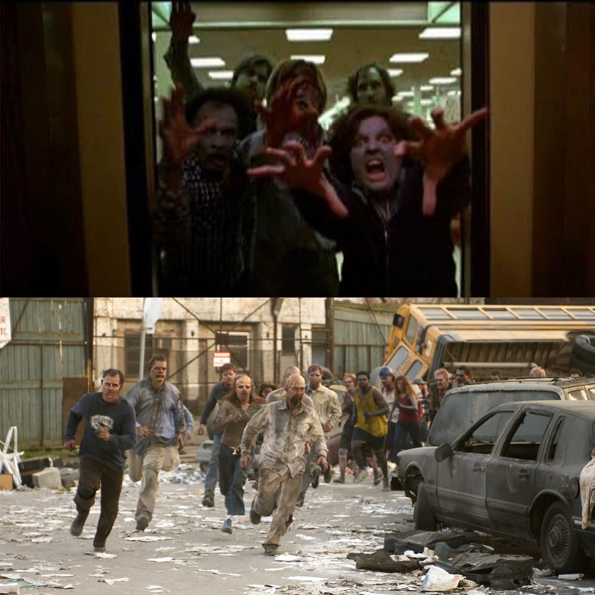 But the main way the 2004 version differentiates from the original 1978 film is the how it hinges on the idea that the relentless press of the zombies is inevitably going to lead to the characters having to evacuate the mall. The original, of course, ended with two groups of living people fighting each other, which was the reason that our heroes had to abandon the mall, making it more about the question of who the real monster was, the living or the dead, which is some classic zombie stuff. The 2004 version is basically just humans versus zombies, and since the zombies are merely mindless vehicles to spread the infection, there’s no real good vs evil conflict here, it’s only about survival, basically Man vs “Nature” rather than Man vs Man.