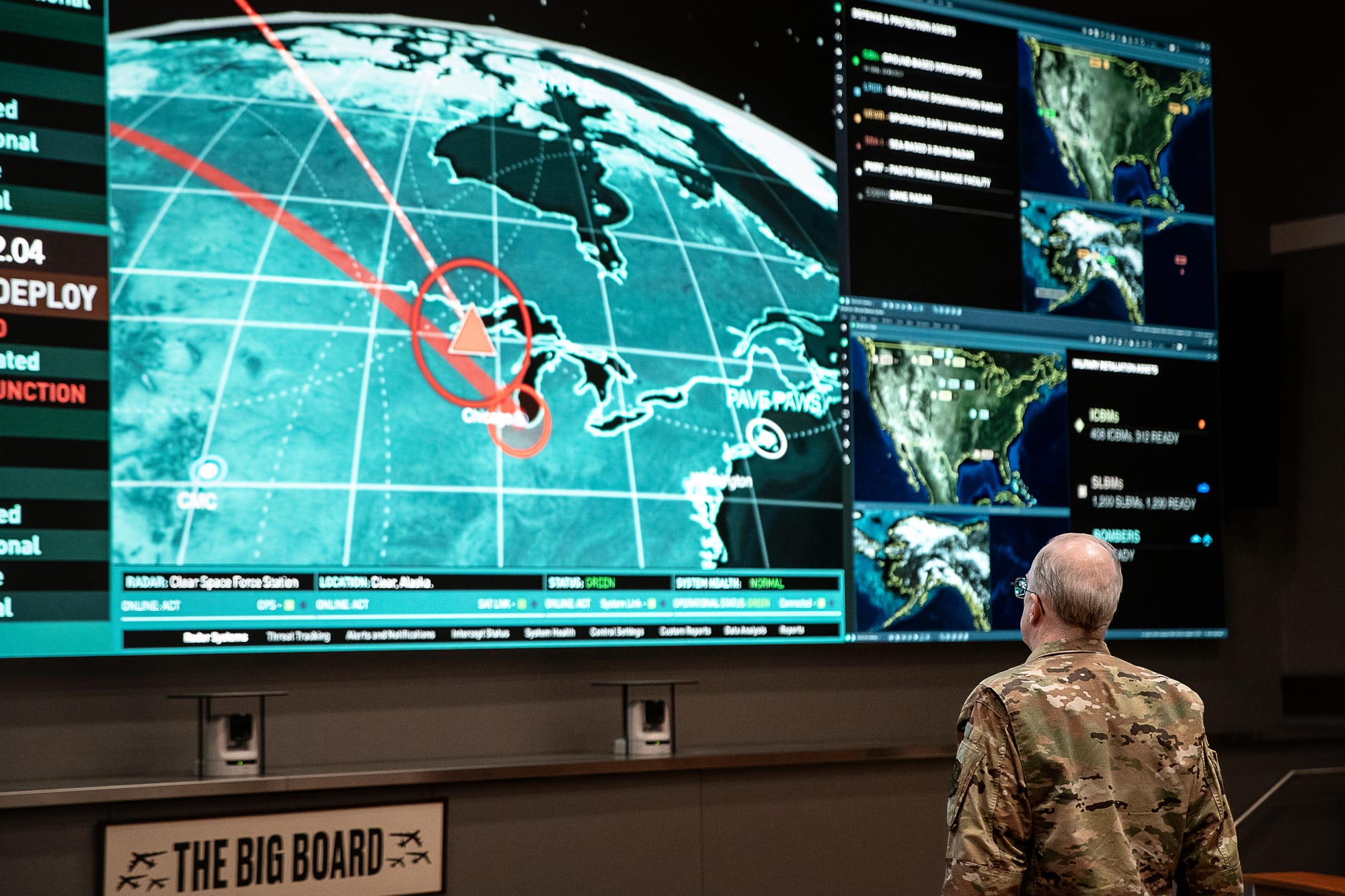 The United States Northern Command, or NORTHCOM, orders a unit with the 49th Missile Defense Battalion (MDB) stationed at Fort Greeley, Alaska, under the command of a young Major named Daniel Gonzalez–who is already having a bad day due to an argument over the phone with his girlfriend–to launch two ground-based interceptors (GBI). These are the anti-ballistic missile component of the United States' Ground-Based Midcourse Defense (GMD) system, which was built to protect us against the possibility of ICBM attack. Unfortunately, the first GBI fails to deploy. The second misses the ICBM. This horrifies Gonzalez and his team, and he stumbles outside to vomit, as his team deals with the realization of just how many people are going to die in Chicago, possibly due to an error on their part.