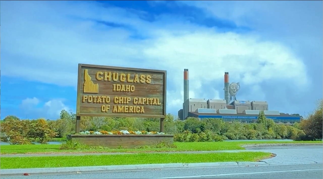 There's only one reason why anyone would ever move to the town of Chuglass, Idaho, and that's the Industry, the potato chips industry, to be specific. Chuglass, Idaho is the potato chip capital of America, and in Chuglass, the Chuglass Potato Chip Company is king. Their signature brand of potato chips carries the slogan "Potatoes + Oil = Happiness," all with their mascot, Chuggy the Chip, a sentient and bipedal potato chip, whose face betrays the horror of its own self-awareness, featured on the packaging.