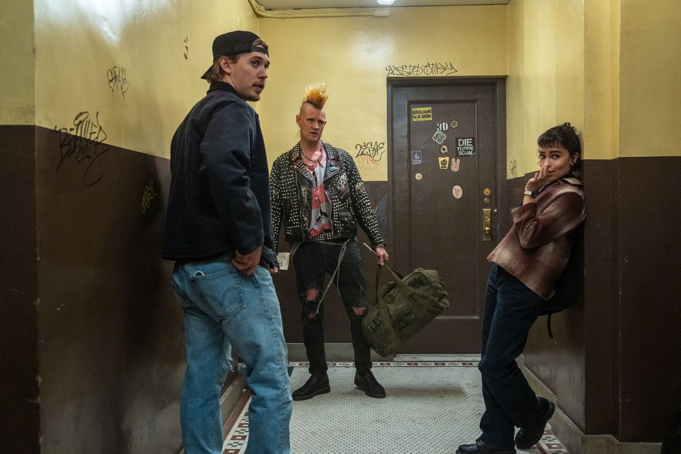 Unfortunately, the film is otherwise made up of a veritable cornucopia of incongruent, not to mention somewhat suspect, pieces right from the start. Darren Aronofsky recently fully embraced GenAI with his horribly ugly Revolutionary War short series, deservedly earning his dumb-ass a ton of ill will, and dimming his star a bit. Zoey Kravitz still continues to carry the stink of her weird sexual attraction to at-the-time 14 year old Jaden Smith. Austin Butler seems like such a stereotypical narcissist little actor-boy that it’s almost like he’s doing it as a bit, so it's hard to take him seriously. And let‘s be honest, nobody looks more like they’re wearing an inauthentic costume than Matt Smith dressed up as a “tough” punk. And perhaps strangest of all, this film, seemingly a time-capsule from Miramax in the late 90s, is packed with people. Packed! Why? What was the draw? I don't get how projects like this happen. Which part of this movie was the heat that made it such a hot ticket? I don't get it.