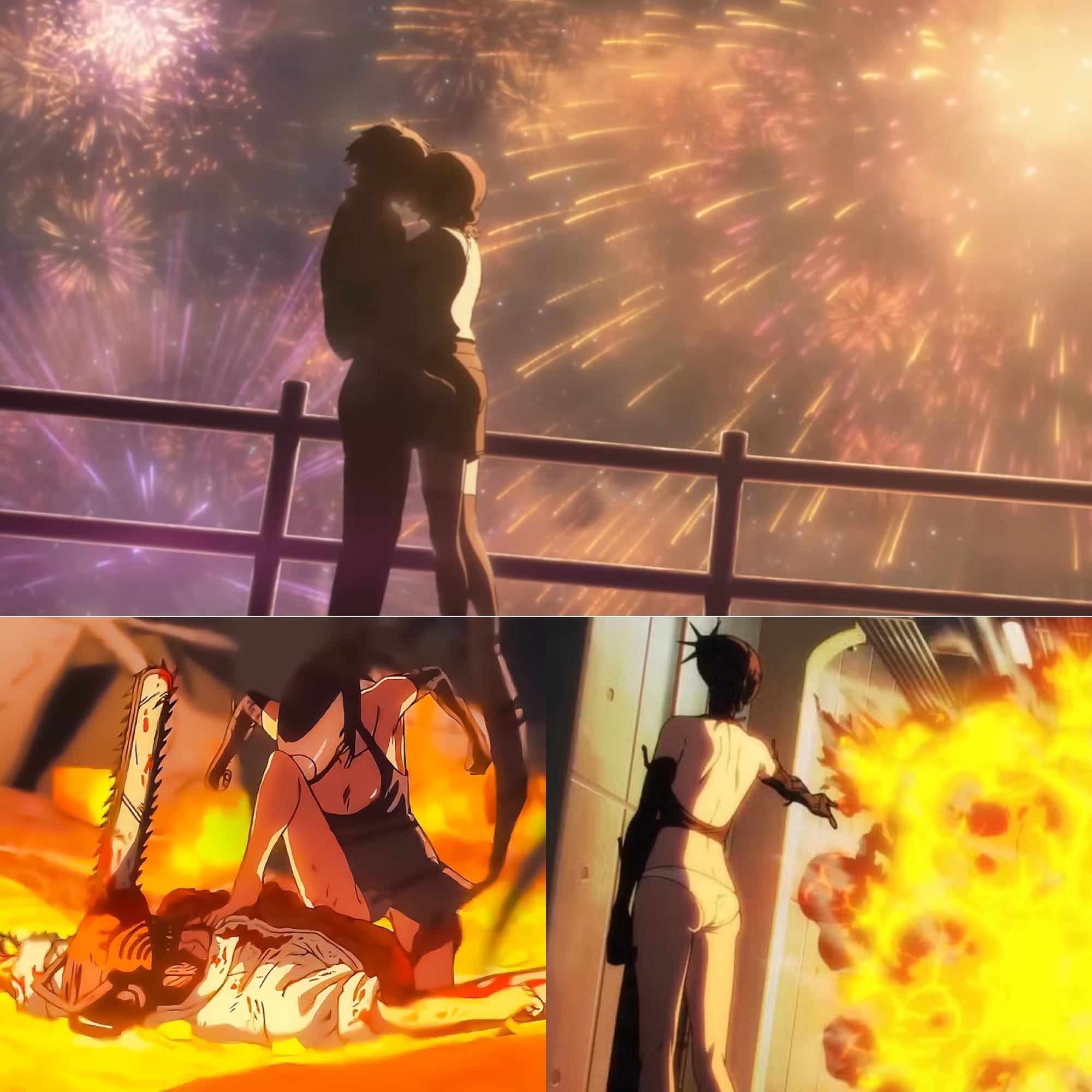 Regardless, soon enough, this is proven true, when, while separated from Denji, Reze is ambushed by an assassin sent by the Typhoon Devil to kill Denji. But then Reze kills the guy with shockingly casual ease, and then forces the Typhoon Devil—who is horrified and immediately and effusively apologetic upon learning that their assassin had targeted Reze under their order—to serve her. Later, while watching fireworks, Reze asks Denji to run away with her. But when Denji hesitates, Reze realizes that Denji loves another. And that decides that.