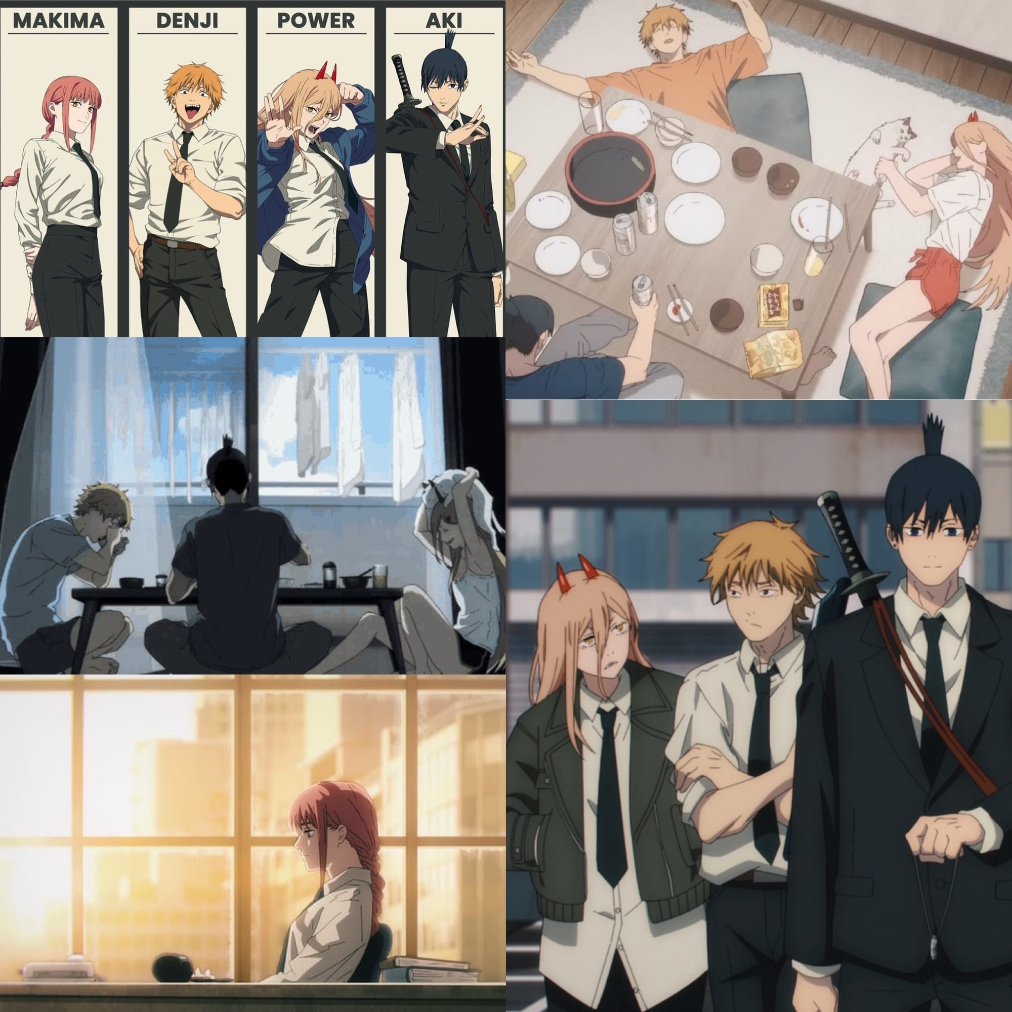 Freshly drained of excess blood, her horns returned to normal, and generally feeling ornery as fuck, Power finds Denji slumped at a table in the cafe, depressed and heart-broken, so she tries to take the flowers that he has for Reze, if she had shown up, as her own. Denji, in order to keep them from Power, eats the flowers. He and Power start squabbling loudly, as the camera pulls away from the cafe.