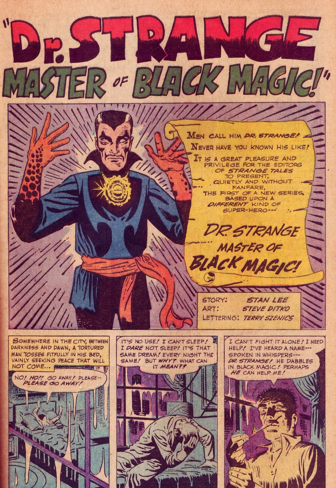 Dr. Stephen Strange was created by Steve Ditko, and first appeared in Strange Tales #110 in July 1963. He is the Sorcerer Supreme, the main protector of Earth against magical and mystical threats.