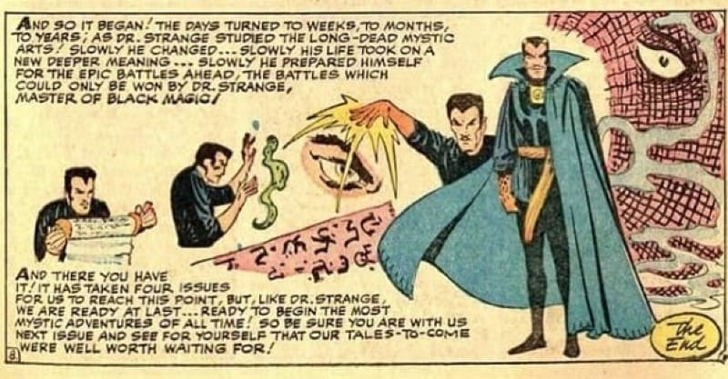 A talented neurosurgeon as arrogant as he is intelligent, Dr. Strange was injured in a car accident, and suffered severe nerve damage in his hands. Unable to accept the fact that he will never be a surgeon again, he travels the world in the search of a cure. Quickly running out of options as far as Western medicine is concerned, he falls down a rabbithole of other kinds of healing. His journey leads him to "the Mystical East" and the hidden city of Kamar-Taj, where he learns magic from the master of mysticism known as the Ancient One. In Kamar-Taj, Strange masters both the mystical and the martial arts, and acquires several magical objects, like the powerful Eye of Agamotto and a Cloak of Levitation.