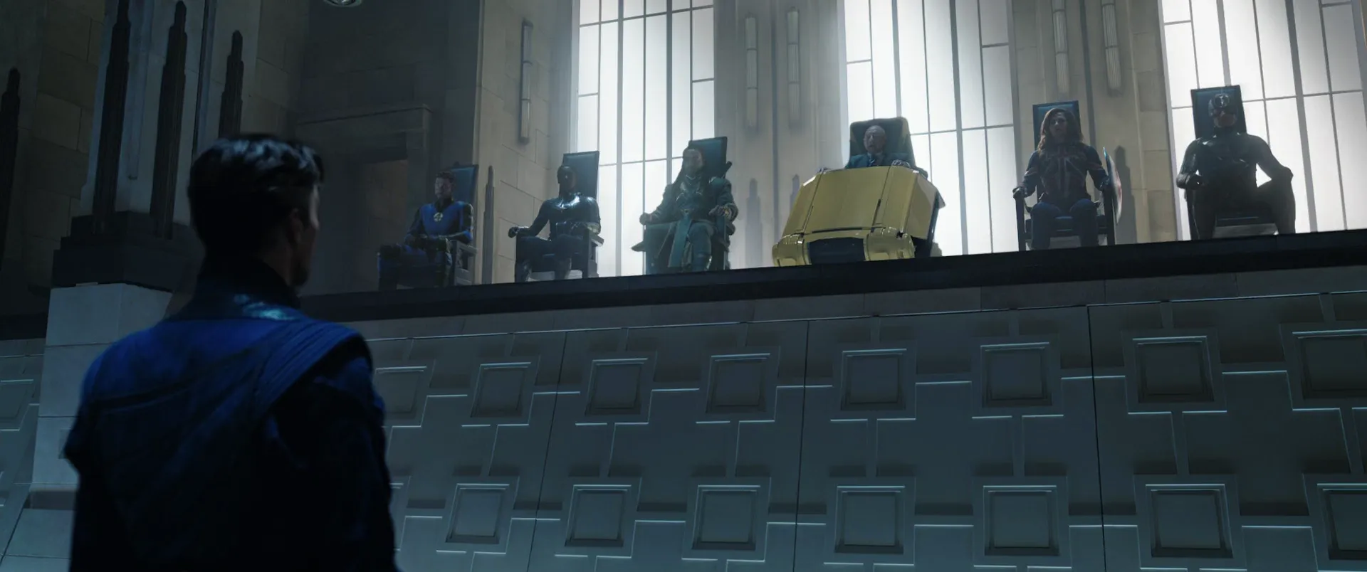 In the MCU, and in this very movie that I am supposed to be discussing, but admittedly have fallen down a few rabbit holes myself... the Illuminati are a group of powerful individuals, founded by a version of Stephen Strange from Earth-838, in order to protect their universe from high-level threats. But they seem to act as a sort of ruling council of superheroes in their world too. When we meet them, their membership includes Reed Richards of the Fantastic Four, Maria Rambeau, the Captain Marvel of this universe, Professor Charles Xavier, Captain Peggy Carter, Blackagar Boltagon, which is Black Bolt's real name—because when he was created by Stan Lee and Jack Kirby in 1965, they just didn’t give a fuck if this kind of ridiculous shit bothered you—and finally, the Sorceror Supreme from this universe, Baron Mordo, who joined after Dr. Strange's death in the aftermath of the Battle of Titan.