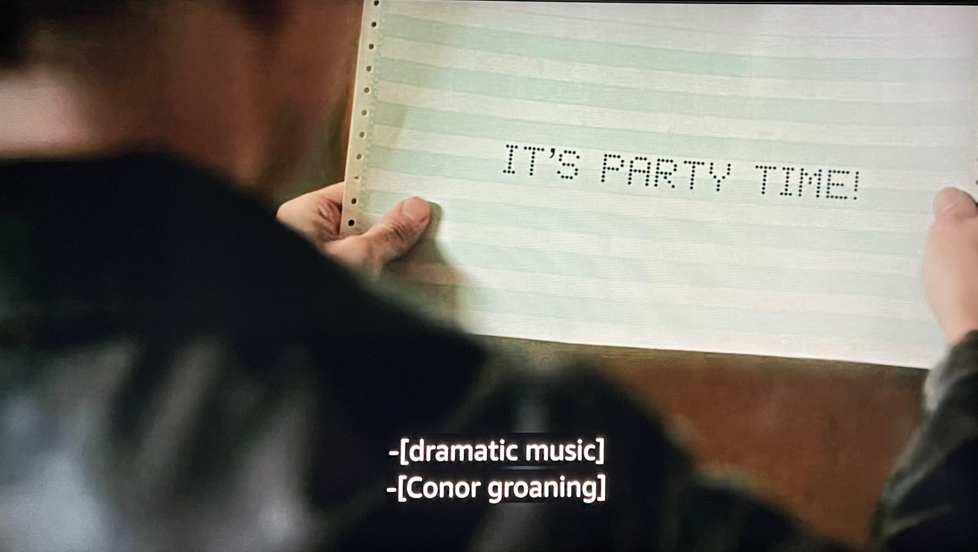 Set in the 1980s, Conor is a workaholic yuppie. He has an aggressive ”sales bro” kind of confidence, but his pleated khakis and sweaters tells us that he is not just a man who is risk-averse, not just a man who is uptight and lacking in any sense of fun or imagination, he is actually a bland and mediocre nobody, and ultimately, nothing but a boring square.
