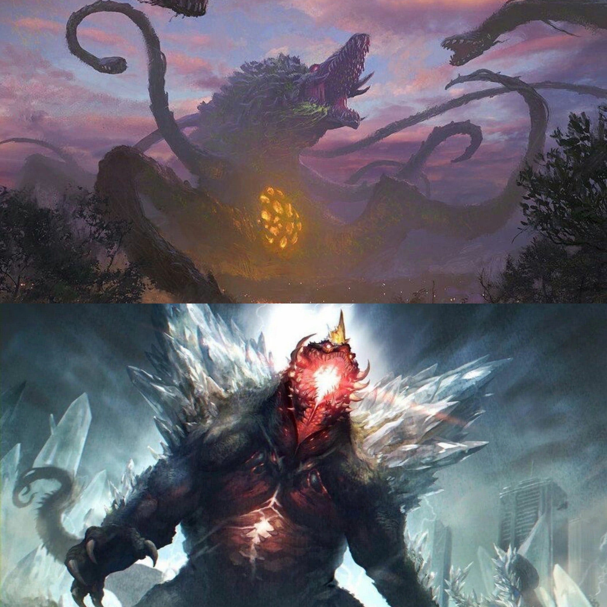 Often portrayed as a kind of amphibious dinosaur-like creature, one who mostly resides in the ocean, after Hiroshima and Nagasaki, as well as the Lucky Dragon 5 incident, Godzilla is primarily considered to have been intended as a metaphor for the use of nuclear weapons. Some believe Godzilla was meant to be more of a metaphor for the United States, the "giant beast" who was awoken from its “slumber" that then went on to take a terrible vengeance on Japan, but this interpretation is nowhere near as prevalent. Sometimes, the Godzilla films seem to be a scold, addressing themes of Japan’s neglect of itself, or its ignorance of its past. Sometimes Godzilla is portrayed simply as a kind of natural disaster. Usually, Godzilla’s attacks are used to highlight the human condition, and our ability to persevere through great strife and hardship. Godzilla is often shown to be a threat to humanity, causing massive destruction every time he comes ashore, sometimes as the result of a deliberate attack, but sometimes as something more akin to a person stepping on an anthill on their way across a park. Other times, Godzilla has been shown to be a protector of humanity, a creature who appears in our darkest hour, to stand between us and whatever it is that threatens to destroy us. And sometimes, Godzilla is treated as more of an antihero, someone who doesn’t mind stomping on the humans himself, but boy oh boy, does he get upset when some other monster comes along and tries to stomp on the humans.