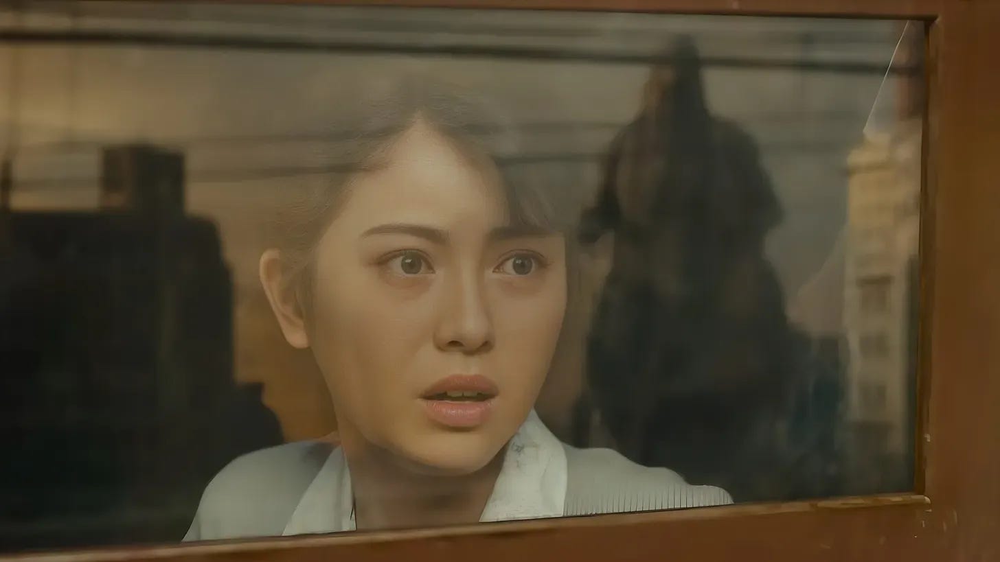 But while I do generally appreciate these kinds of easter eggs, especially when they appear within a modern day reboot of one of these storied franchises, I also found this film’s nostalgia for the original film, with its many nods and homages throughout the movie, to hamper it somewhat. This was something that took me a while to really put my finger on, but in a way, this film put me in mind of JJ Abram’s Star Wars sequels. I don’t mean Last Jedi, of course, which is a masterful film, but more the two bookends that were directed by Abrams, films that are defined by their cowardice when it comes to forging their own path, by their inability to imagine a story outside of the confines of what has come before, or accomplish anything beyond just highlighting callbacks and homages. This film is nowhere near as bad as that, of course, but it does seem to mostly be interested in recapturing the same feelings that the creators felt when they fist saw a Godzilla as a kid. When compared to the newer vision the film Shin Godzilla presents, Godzilla Minus One just ends up seeming like a rehash of older themes and older iconography. Where Shin Godzilla was a vicious satire of political incompetence inspired by the events surrounding Fukushima, a shrewd dissection of both power and politics, Godzilla Minus One, while a seemingly earnest tale of heroic sacrifice and the power of community, also seems to be asking: “Yeah, but what if being a kamikaze pilot was actually a good thing sometimes?”