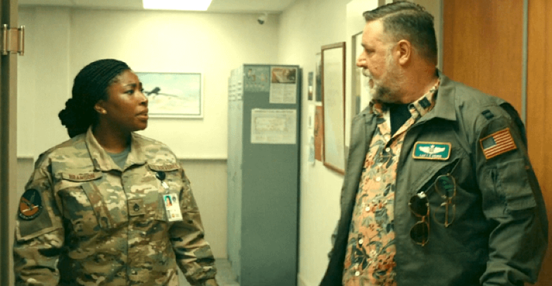 The guy actually piloting the drone is Captain Eddie "Reaper" Grimm, a crotchety old Air Force officer who has trouble with authority, especially his little mustache-wearing, college-basketball-obsessed Colonel. Eddie‘s stick-time is supported by the soon-to-be-married Staff Sergeant Nia Branson. Stationed half way around the world from the Philippines in Las Vegas, Nevada, they are obviously good friends, as well as a well-oiled machine in the drone command center.