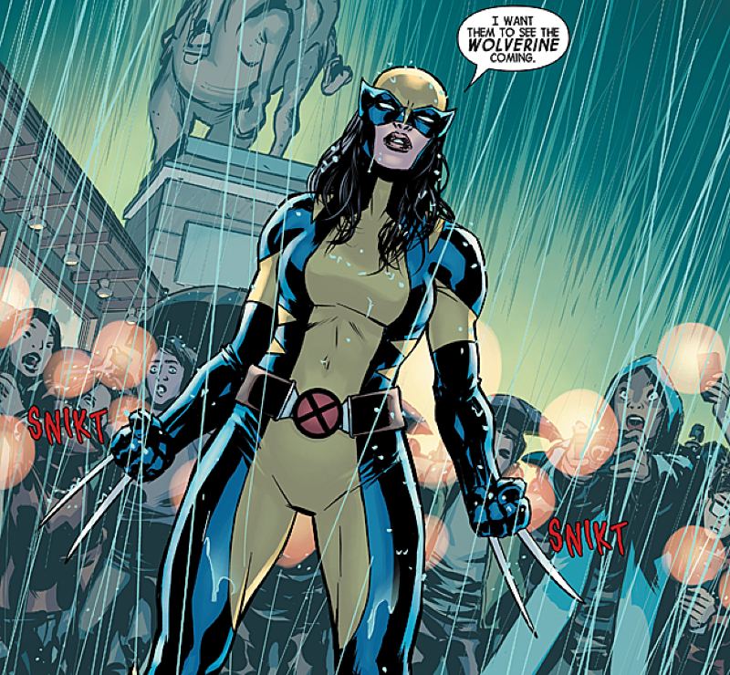 While not as well-known overall as Wolverine, Laura has been steadily gaining popularity of the years. Finally, in 2015, while Logan was briefly dead for a time, and was then an old man version of himself from a dystopian alternate universe, Laura adopted the name and costume of The Wolverine. She has kept it ever since, and is now sharing it with Logan, who is young-ish himself once again.