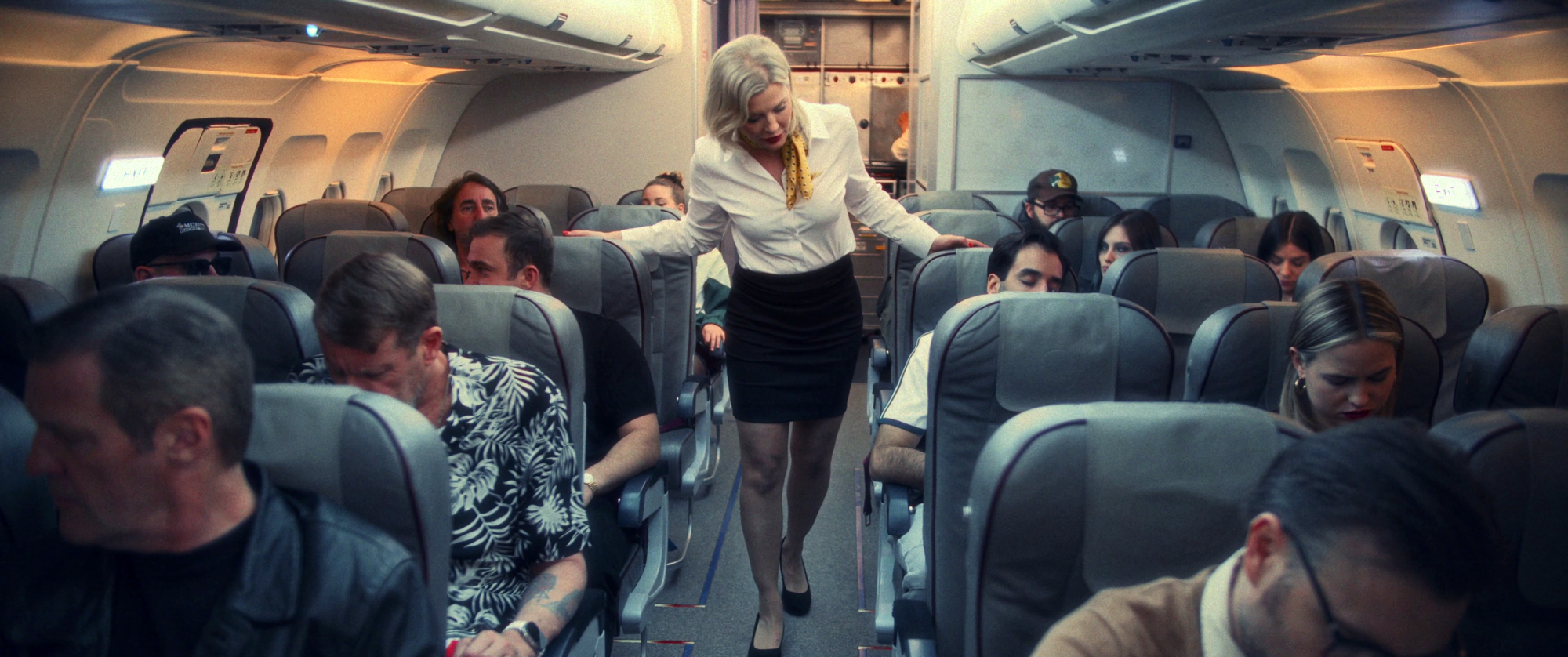 Will our sexy hero be able to return these seats and tray tables to their full upright position before the monster gets them all? You better make sure your seat belt is securely fastened low and tight across your lap, and all carry-on luggage is stowed underneath the seat in front of you, or in the overhead bins, because shit is about to get bumpy here in the unfriendly skies...