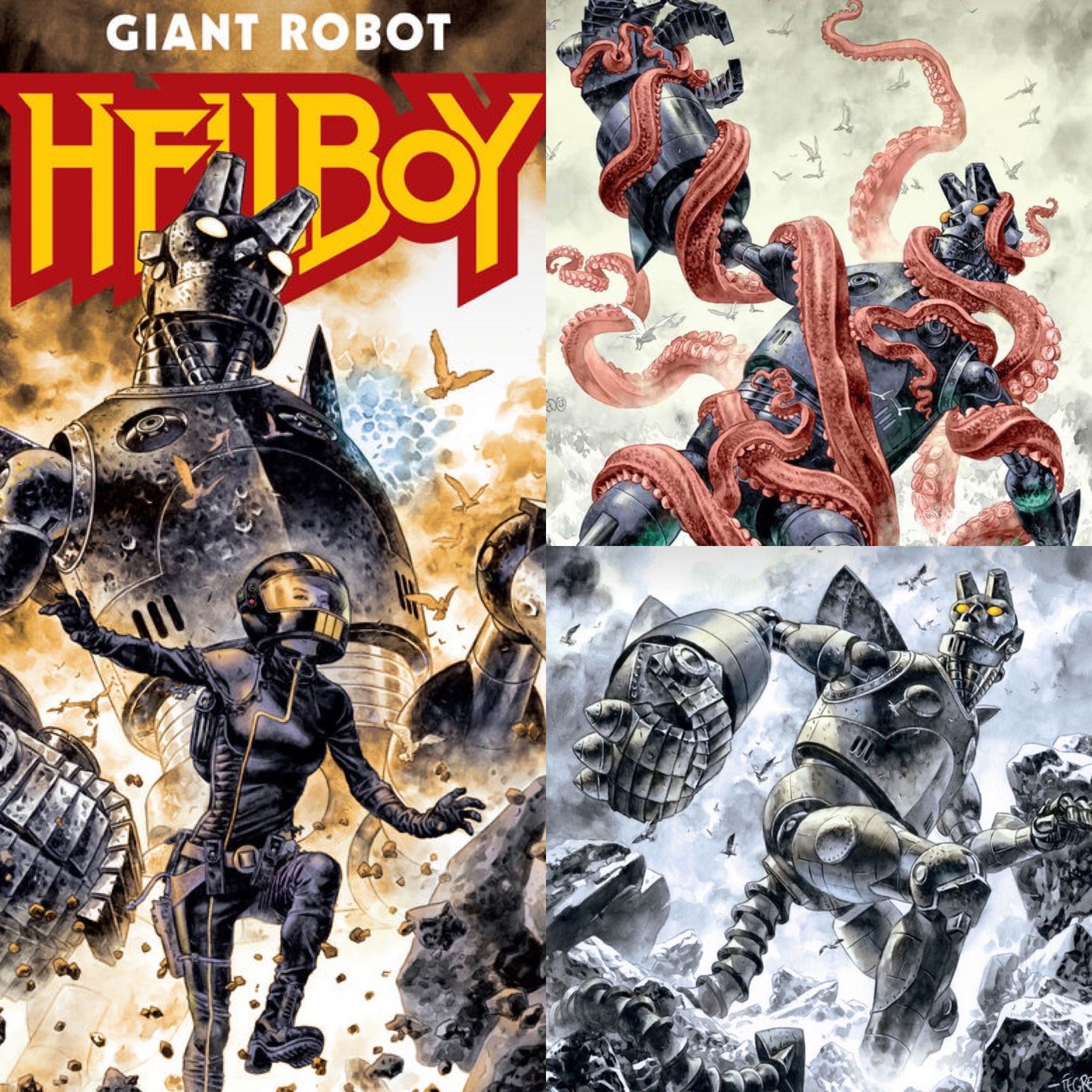 Based off sketches that Hellboy creator Mike Mignola considered “too silly” until COVID-19 left him with extra time on his hands, Giant Robot Hellboy tells the story of Demonspawn, Monster Hunter, and Future King of Hell fated to destroy the world, Hellboy, having faced Lovecraftian monsters and pulp-era villains, and almost every supernatural being found in folklore, fiction, and cryptozoological fields in between, facing the only real terrors left for him to fight… kaiju…