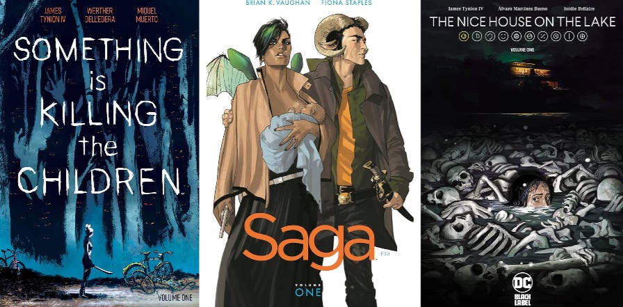 Special Mention to the on-going and still great: Something Is Killing The Children, Saga, and The Nice House On The Lake.