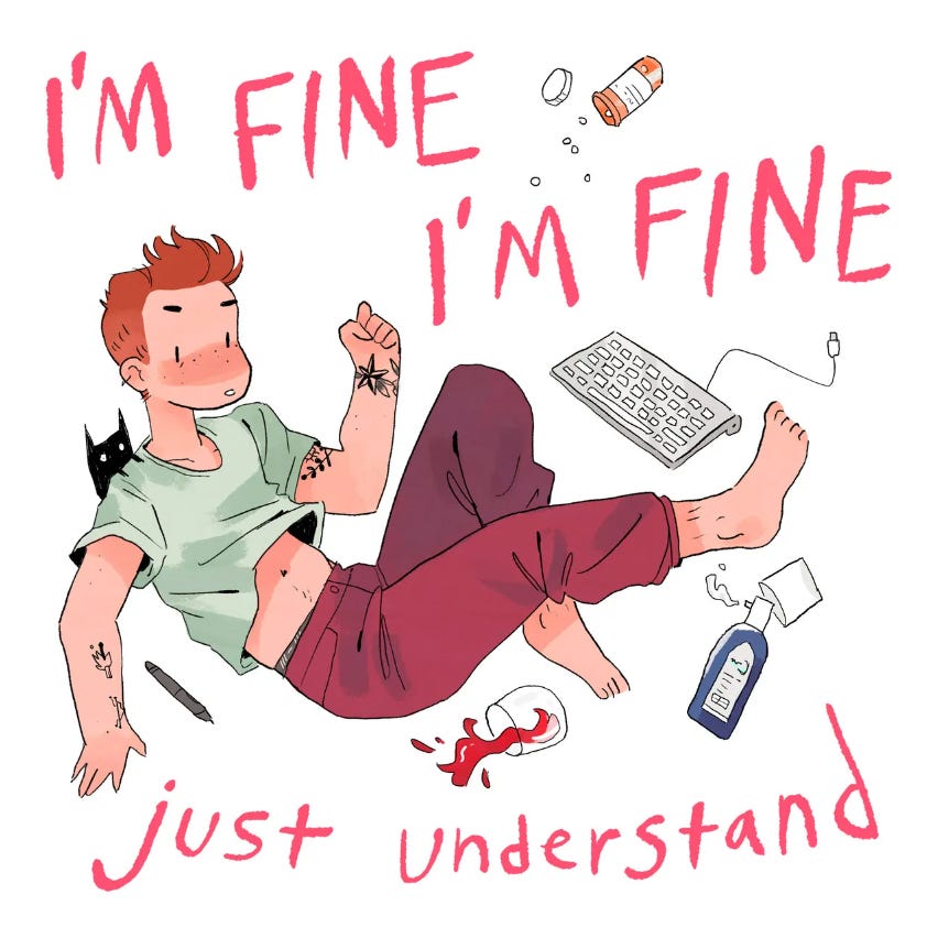 I’m Fine I’m Fine Just Understand is his ongoing Substack, a diary of sorts, chronicling through regular short comics his emotional journey with gender, identity, transition, and body image, all while heavily peppered with the humor and struggles of everyday life.