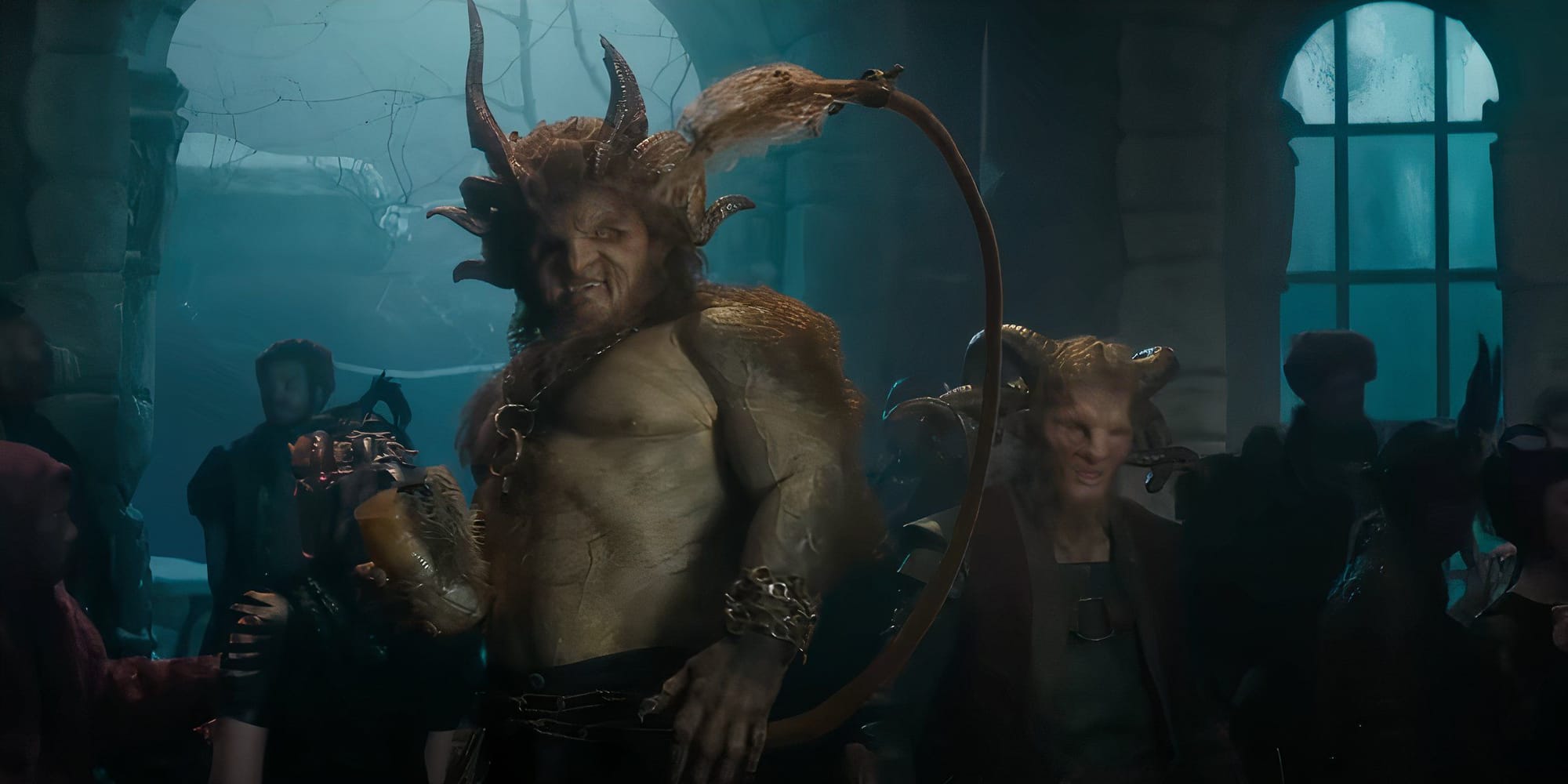 In the film, Krampus is the originator of the Naughty List, but he started to get a little too zealous about punishing the children, and started doing it without Santa’s permission. This led to their falling out, and now Krampus is on house arrest in a hidden city much like Workshop City, but it’s scary, big time “Knott’s Scary Farm” vibes. The place is full of hellhounds, demons, and ogres, instead of candy canes, Christmas cheer, and tinsel. Krampus is a dark Scandinavian prince satyr in exile, a cross between a supervillain, a devil, a big sweaty Slavic guy, and a swaggering rock star. He parties endlessly, lolling about in leather pants, playing it up for his adorning court, all the while, biding his time to get revenge for his imprisonment. But, of course, just like the root of every problem in this country, because Krampus is Santa’s brother, he’s still invited to Christmas dinner.