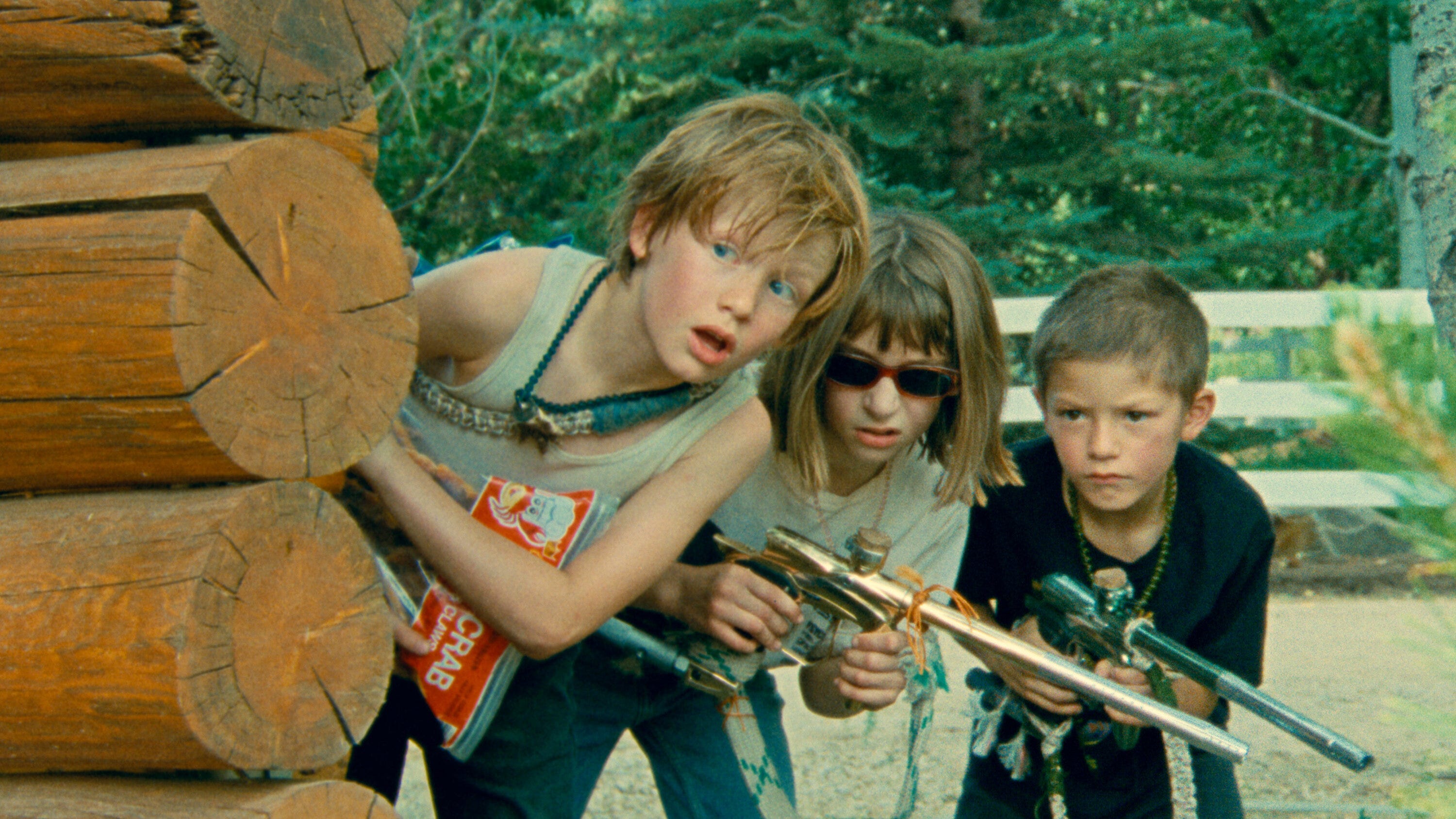 The movie opens with three kids—the two brothers, Hazel and Jodie, and their best friend Alice—hauling ass down a wooded country road on their dirtbikes. It’s summer time and the three of them have been turned loose upon the world. Left to their own devices, they are a trio of wild little barbarians, out tearing around town and causing trouble. Armed with paintball guns, ski masks, and some gummy worms, they’re on a mission to break into a local warehouse to steal a new video game system. Crack shots with their paintball guns, they make quick work of the barely-invested security, before thundering off back home with their newly pilfered prize, triumphant.