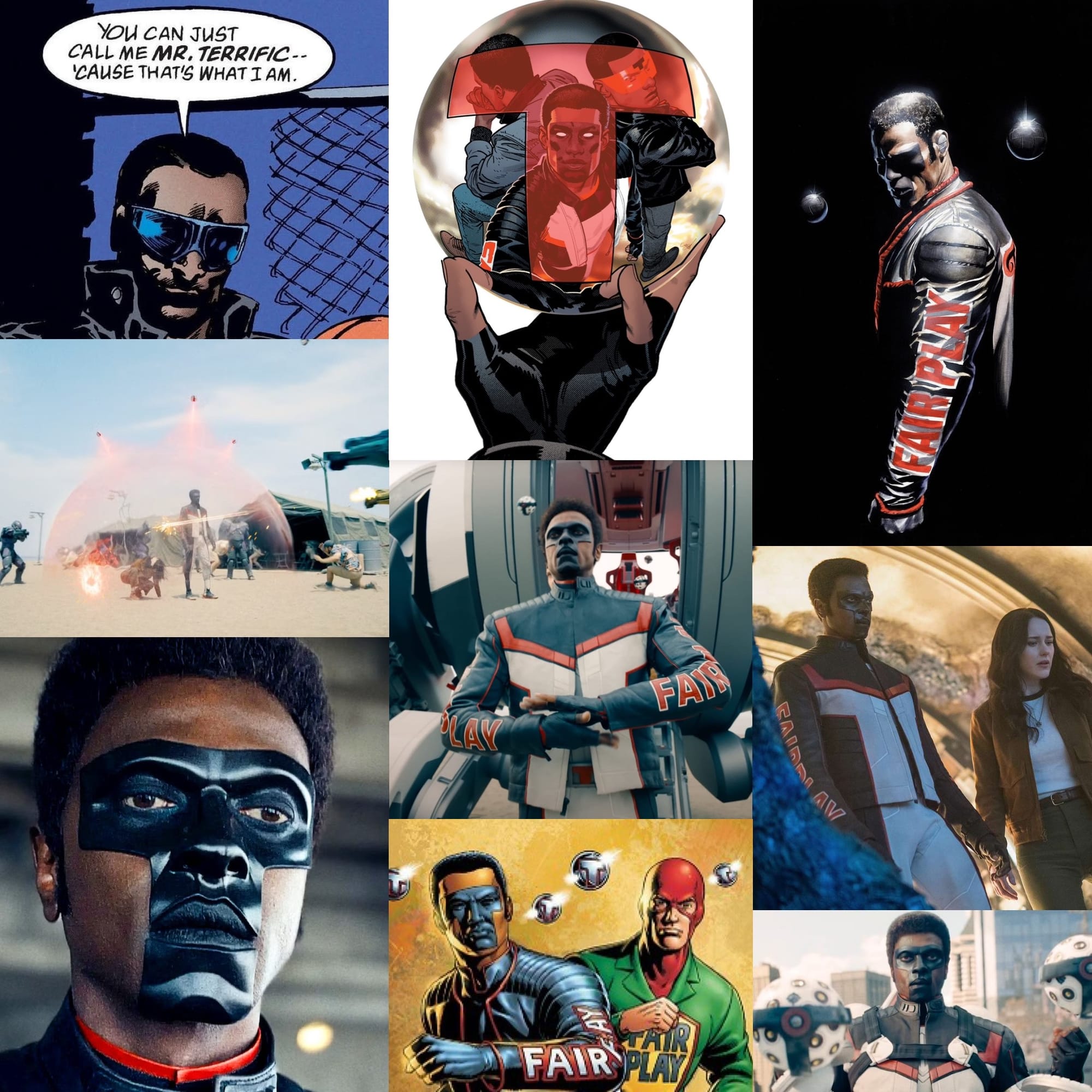 Much like Terry Sloan, who was a genius Olympic-level athlete who suffered from depression and turned to superheroing and a focus on "fair play" to turn his frown upside down, Micheal Holt is commonly depicted as a genius and athlete who also suffered from depression. But then, on the verge of suicide, he stumbled upon the story of Terry Sloane. Inspired, Michael adopted the "Mister Terrific" identity, as well as the hero's concept of "Fair Play" and became a superhero. Now, as Mister Terrific, he uses his intelligence and wealth and martial arts skill to defend Earth.