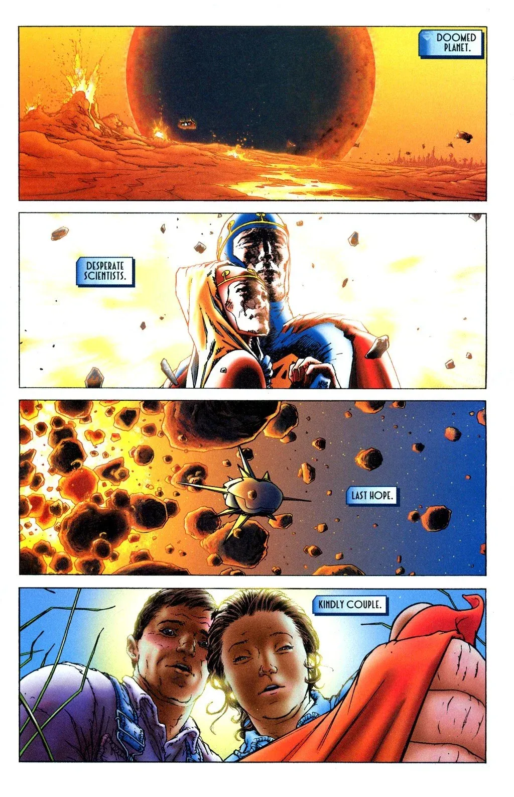 Succinctly, for those of you who aren't so sure about the details, here's how writer Grant Morrison, artist Frank Quitely, and inker/colorist Jamie Grant retold that story in All- Star Superman #1 in November of 2005...