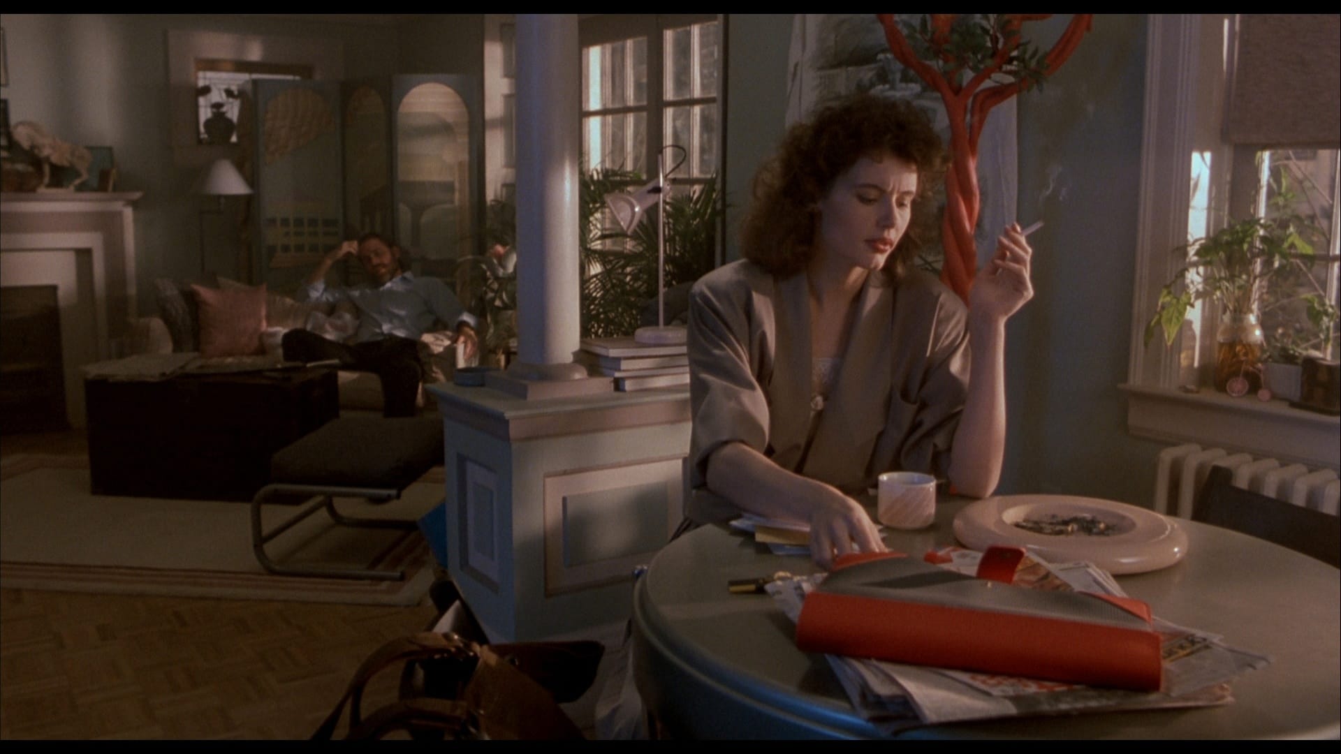 Unfortunately, Veronica also has a creepizoid boss, who just so happens to be her ex-boyfriend too. I forget his name, but he sucks. Big time. He's a lanky fucker too, but with a sitcom dad beard and a Cosby sweater. He is obviously harboring some anger issues too, as he casually breaks into her apartment to shower when he’s not stalking, consumed with jealousy. He blackmails her too, and will casually suggest occasionally that he and Veronica have some stress relieving sex, heavily implying that this PCWorld magazine she works at does not have an HR department. Much like the fanciful ashtrays that seem to adorn every shelf and table, nothing screams "It's the 1980s" more than the fact that the film doesn't treat the creepy boss/ex-boyfriend character like the complete fucking scumbag that he obviously is, and at worst, portrays him as only kind of a schmuck. Plus, he has a gun, of course. So, taking America’s favorite math problem of entitled white guy plus firearm, and it's pretty easy to guess what issues this Checkov's Asshole is gonna cause.