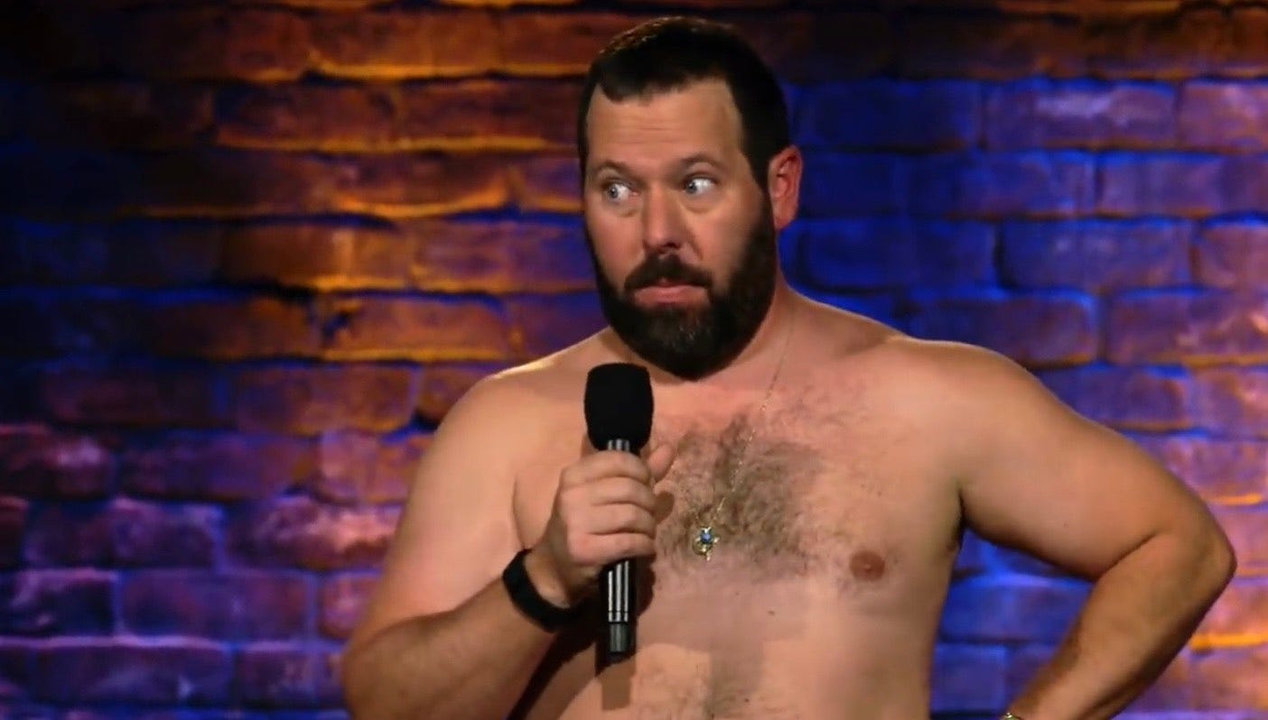 Bert Kreischer is one of those guys. Now well past middle-age, up til now, he’s led a usually loud, probably drunk, and always ready to party kind of life. He’s the kind of guy who has a story that starts “the second time I pooped my pants in public…” If you ever needed somebody to “get the party going” or if you wanted to see someone do a really long keg-stand, or maybe jump off something high onto something that will not break his fall, or maybe fart gasoline across a fire… who knows, whatever it is… Bert is your guy. Because he is most likely one of the guys who were originally responsible for unironically creating the “Hold my beer” meme, all of these stunts, mishaps, and crazy misadventures have left Bert with a lot of stories to tell, and the guy knows how to tell a good story, which he does often, usually on stage, while shirtless, with his big hairy beer-belly on display for all to see.