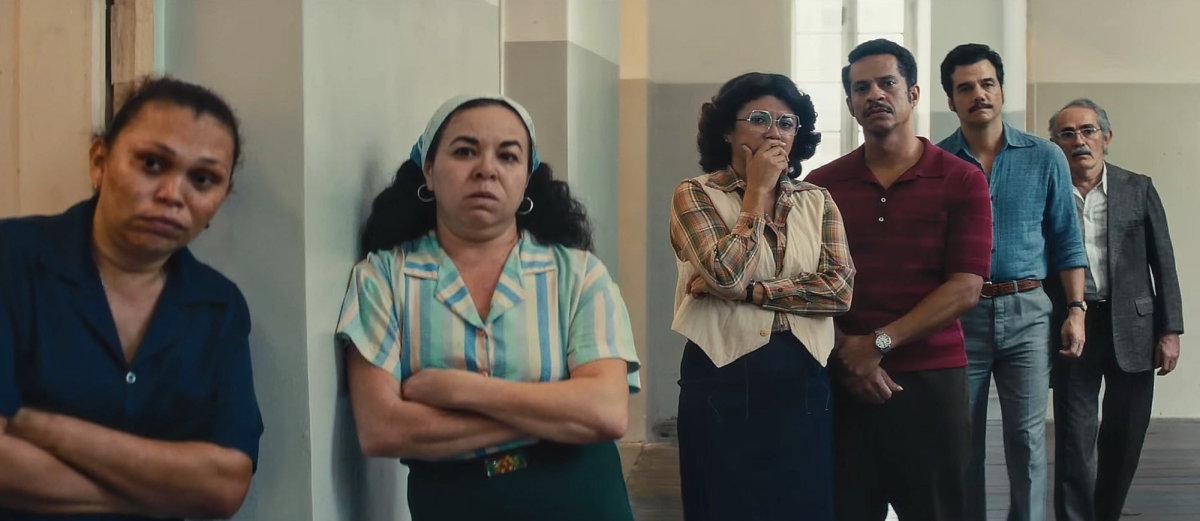 Marcelo, meanwhile, meets with the resistance in the upstairs offices at the Cinema São Luiz, where his wife’s father works as a projectionist. They record his testimony about Ghirotti's corrupt activities, and how Ghirotti’s interference at the university led to him and his wife getting into a physical altercation with Ghirotti and his son while at a dinner, all of which is what led him to having to hide out in Recife. The resistance tells Marcelo he has been officially labeled as a communist sympathizer by the government, and has not only been barred from leaving the country, but that a contract has been taken out on his life. Obviously, this is upsetting news.