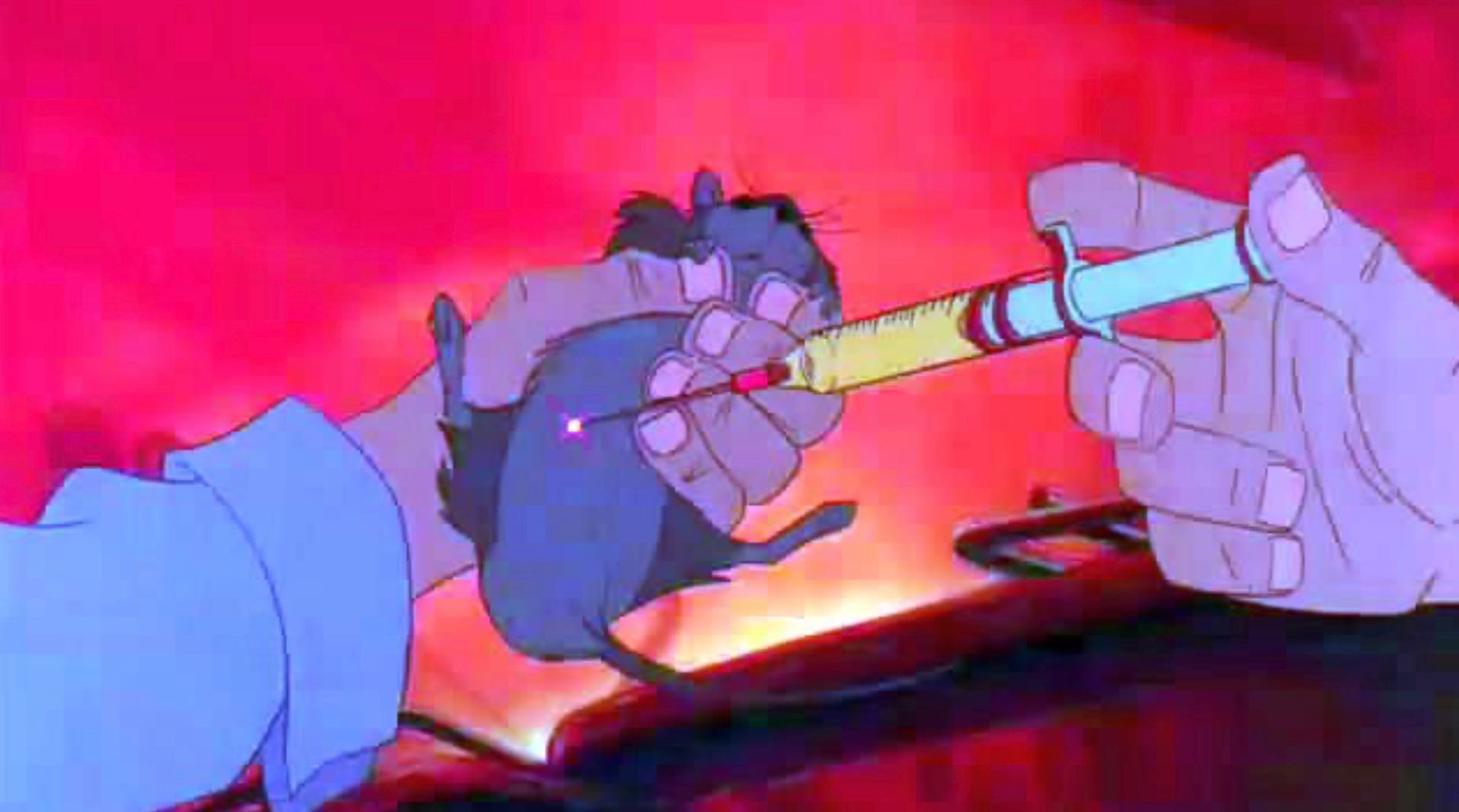 Because it turns out that Jonathan Brisby, and the rats who live in the rose bush in the farmer’s front lawn, are all escapees of the NIMH lab, all of them having been tortured in the name of science, all of them having been brutalized there, and subjected to strange injections.