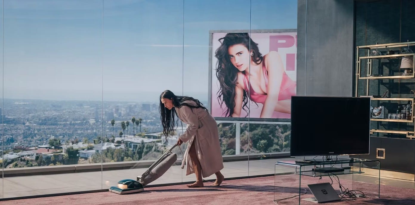 Elisabeth injects The Substance. That's when things get a little bit gross in her frankly massive and blindingly white bathroom. She writhes in agony, and a new and younger version of herself bursts free from within her, splitting her open like Han Solo using a Tauntaun for temporary shelter. Now young once again, she finds herself looking down on her unconscious original body, torn open, and lying on the cold tile of her bathroom floor like a discarded towel.