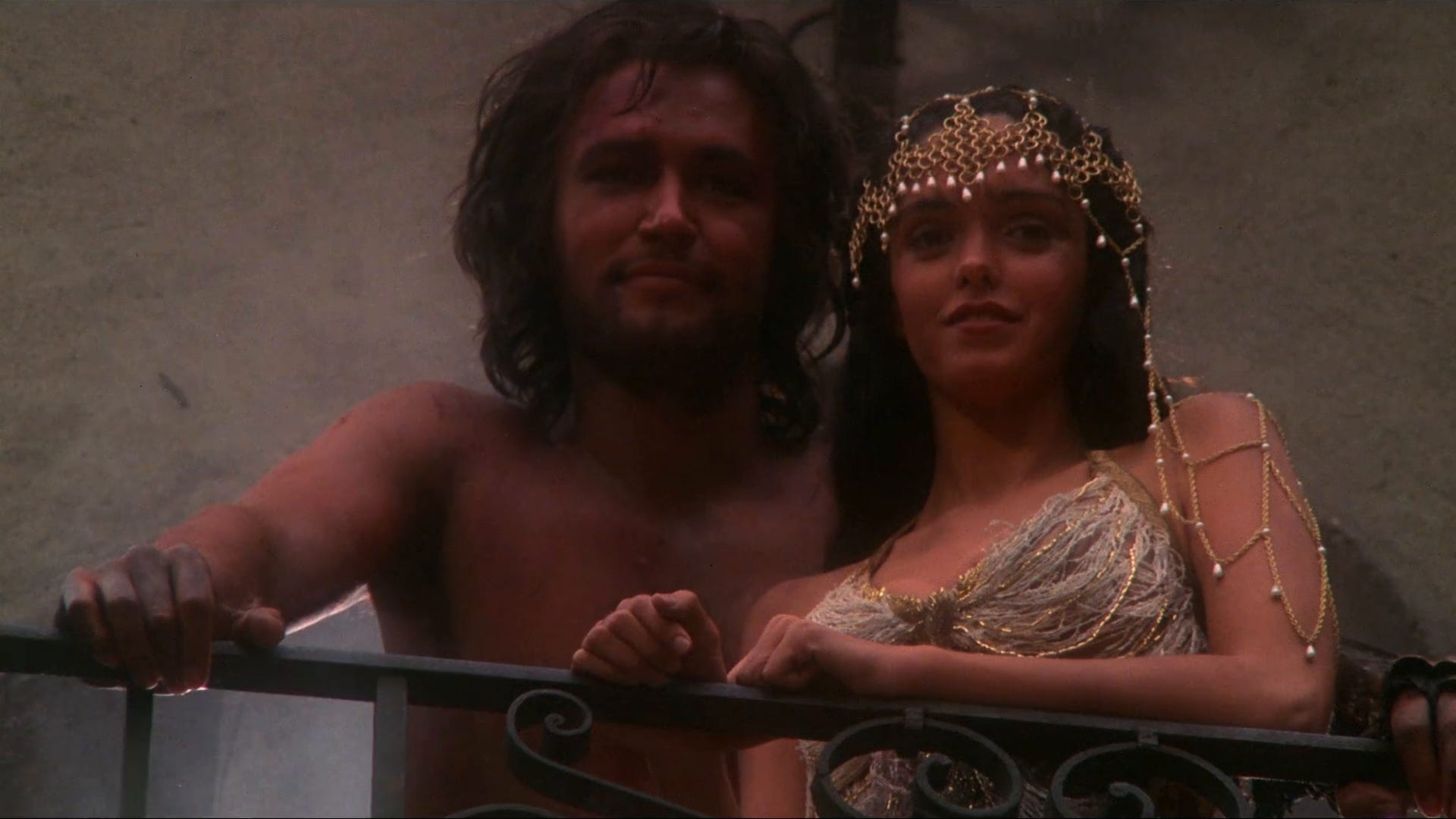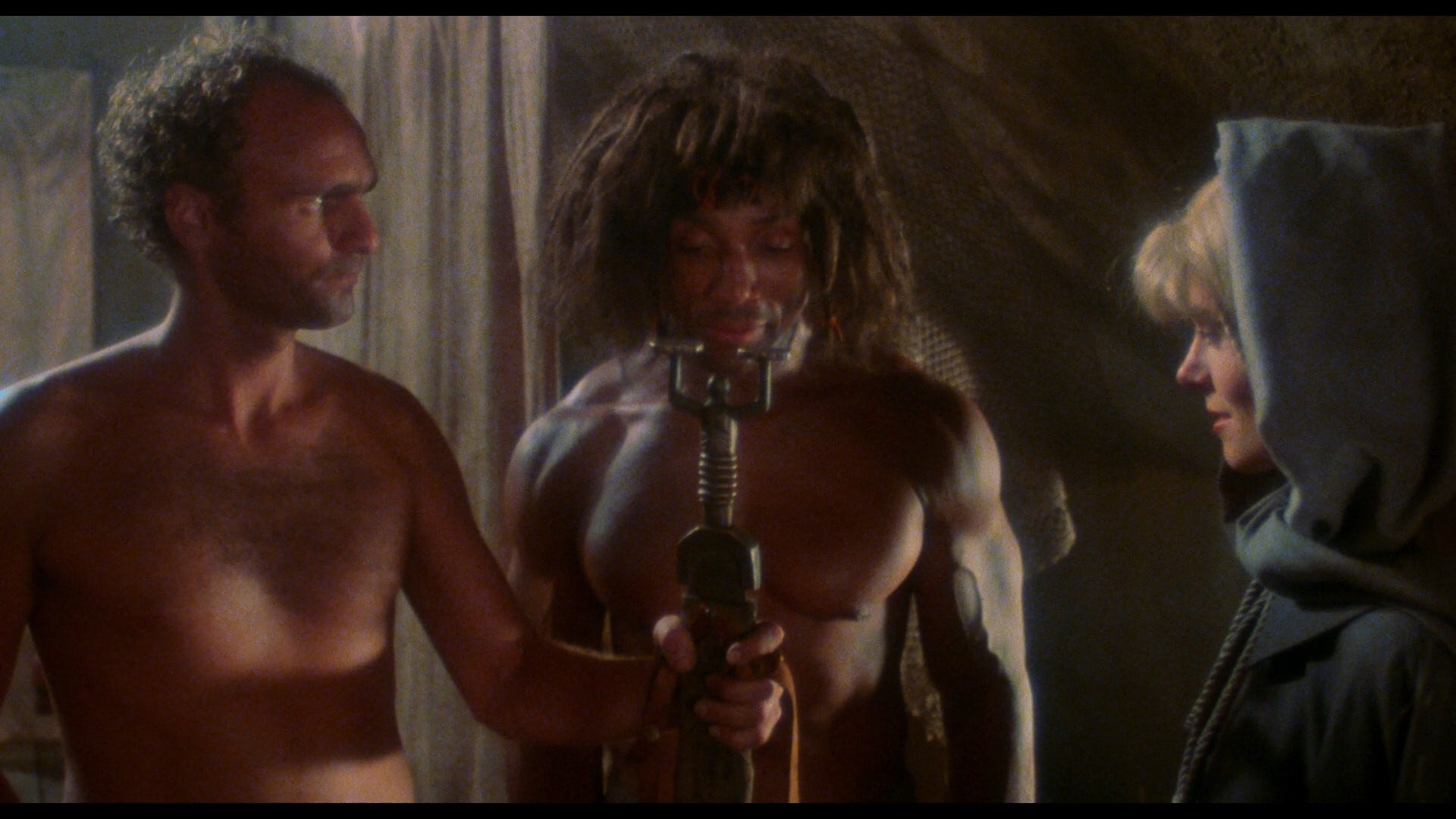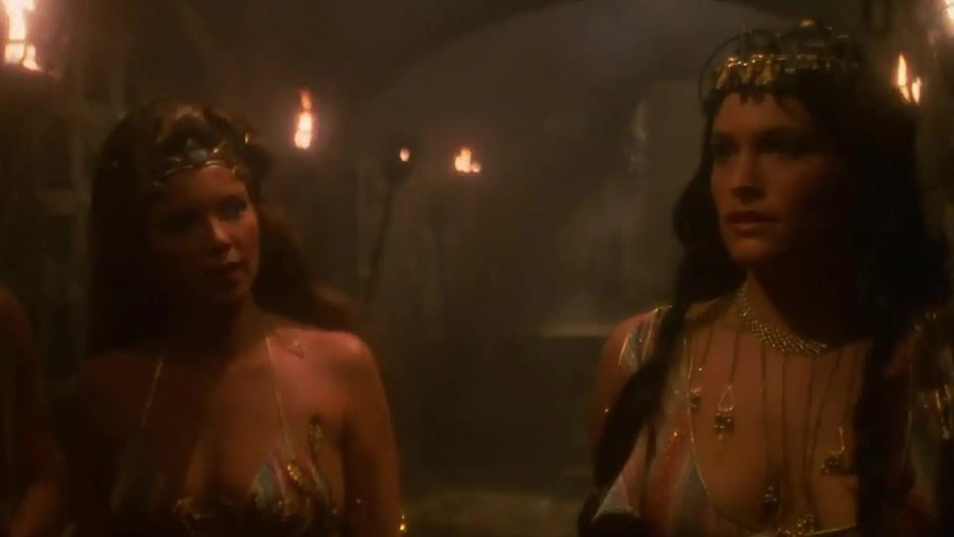 The wigs are terrible in the way where they’re hellishly awful, but also… incredible? Unfortunately, while they’re all wearing those wigs, most of the actors look alike in a way that gets really confusing really quickly, especially under torchlight, when they’re all wearing pieces of glitter armor and loin clothes.