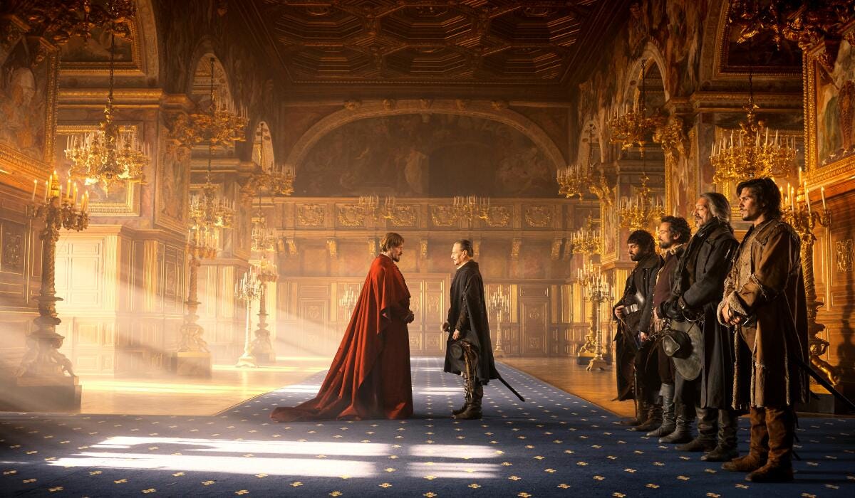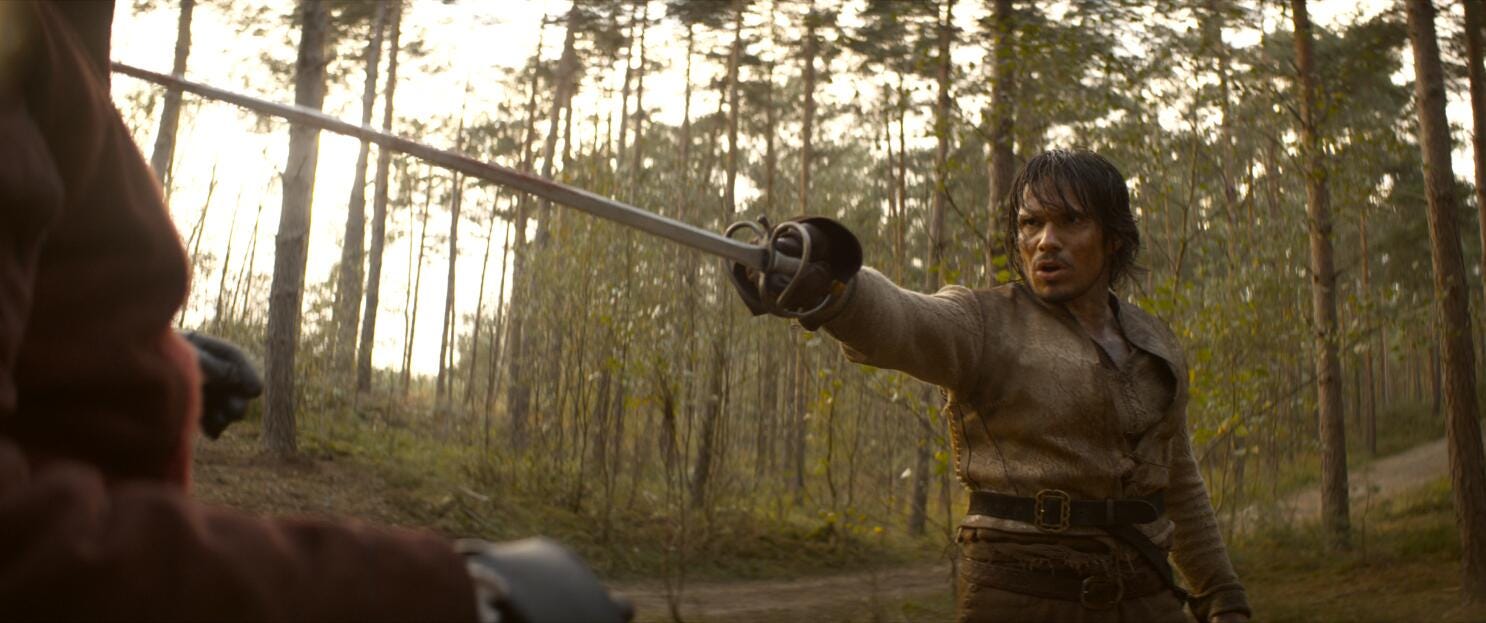 The cast are all great, especially our four heroes. Francois Civil plays D’Artagnan, Vincent Cassel is Athos, Romain Duris is Aramis, and Pio MarMai is Porthos, but it’s Eva Green who steals the show as Milady. She’s fantastic.