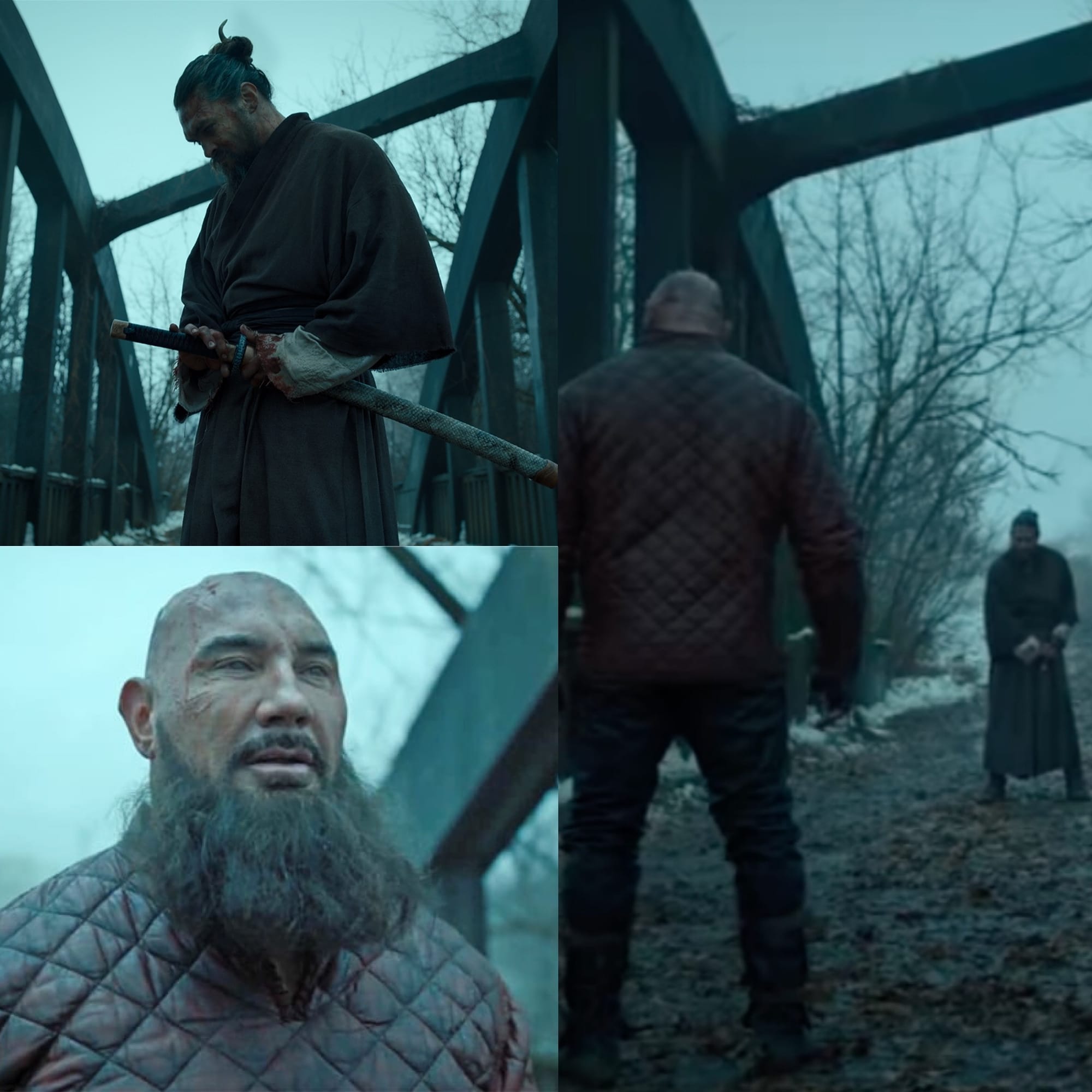 Momoa was the hero of the show. He played Baba Voss, a fearless warrior, and the leader of the Alkenny Tribe. Bautista was the villain of season 2, and he played Edo Voss, Commander General of the Trivantian army, hailing from the rival kingdom of Payan, and Baba Voss’ vengeful younger brother. I loved that silly-ass show. It's Mad Max meets Game of Thrones meets Zaitoichi, because most of the cast plays a blind character. It's a lot more clever and inventive than you might expect, and apparently used a lot of blind and sight-impaired actors too. If you like sci-fi/fantasy and you haven’t checked out See, you really should.