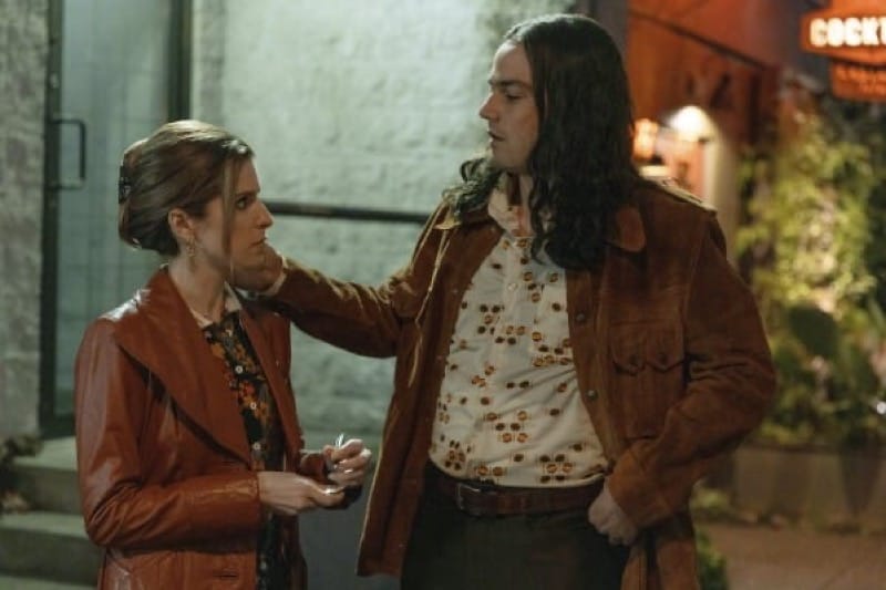But in a clear response to that critique, Kendrick avoids directly showing a lot of the violence of Alcala’s attacks, often choosing to cut away, or obscure it. Instead, she wrings a lot of the story's tension from the sexism and implied threats that come in Sheryl’s day to day life. Whether it’s the many times men gaslight her, or touch her hair without permission, or in the way she has to adjust her life in order to avoid her creepy neighbor, or even when she is forced to "be polite" and to walk across a dark and deserted parking lot with a man she's pretty sure might try to kill her, the pervasiveness of it stunning. From the casting call where two men openly discuss her physical appeal in front of her, all while she must smile and laugh with them, to the moment when the host of The Dating Game warns Sheryl not to scare off the bachelors with her intelligence, to when Amy must smile and soothe and reassure Alcala in order to make it out of the desert alive, the film makes a lot out of the various common (and uncommon) situations where a woman must play “nice” if she wants to survive.